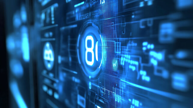 Abstract futuristic digital interface with glowing blue data streams and a prominent number 81. Perfect for tech, innovation, AI, data analysis, and progress concepts.