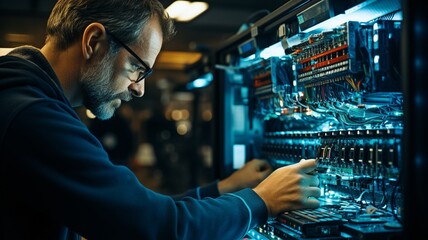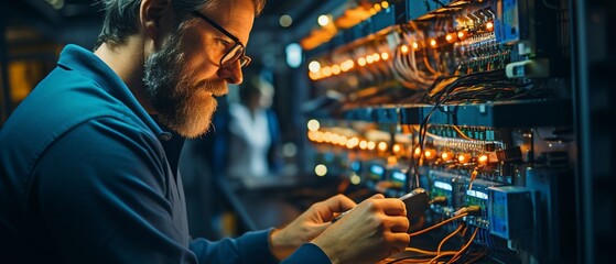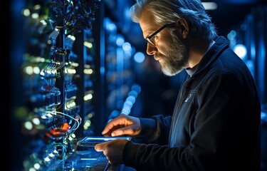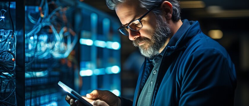 It Engineer Utilizing Tablet For Network Maintenance In Server Room Images
