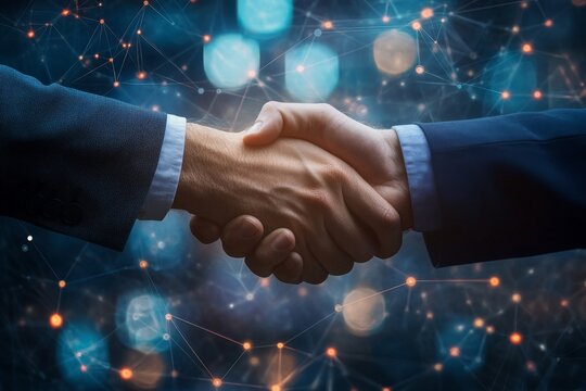 The handshake between business partners serves as a powerful symbol of collaboration, commitment, and success in the corporate world as it signifies mutual respect and professional connections
