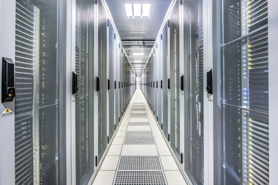 Professional Photography of the corporate IT infrastructure and data center, showcasing the technology backbone, Generative AI