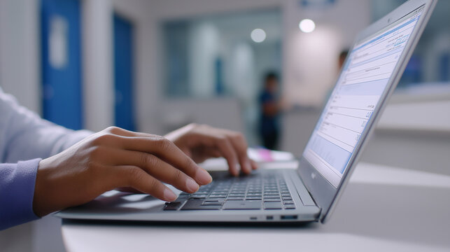 Hands Typing on Laptop with Digital Overlay of Abstract Squares. Modern Technology and Innovation, Ideal for Business and IT Projects, Connectivity and Digital Workflow in a Professional.