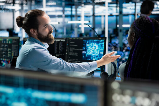 It Specialist Analyzing Ai Data In Server Room Images