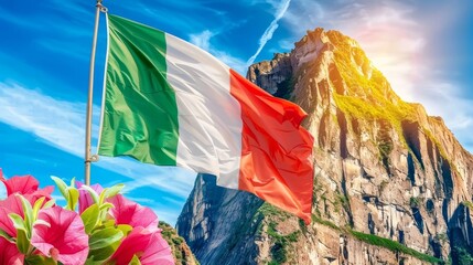 Spectacular italian alps with italy flag in breathtaking alpine beauty overlooking scenic panorama