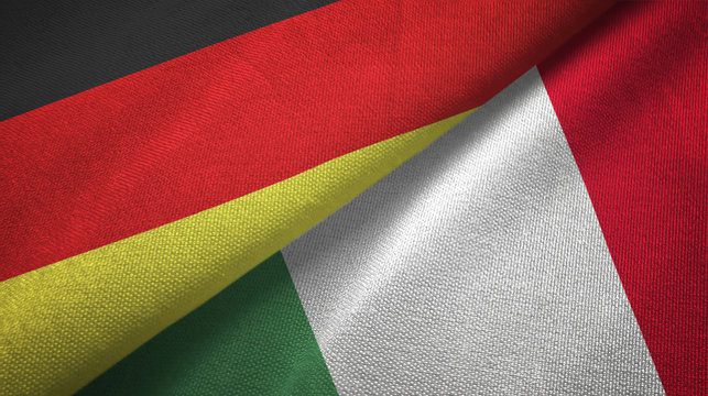 Germany and Italy two flags textile cloth, fabric texture