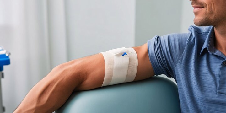 Intravenous Infusion: A Close-Up View of a Man's Arm with a Securely Applied Bandage and Cannula, Resting Comfortably