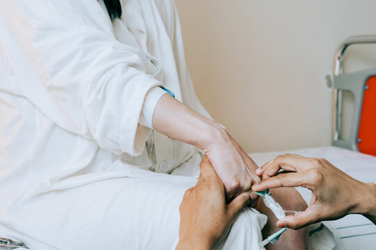 Scene of a medical worker giving an intravenous injection