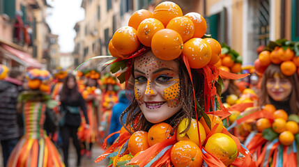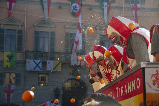 Vibrant Carnevale di Ivrea,orange-throwing festival,