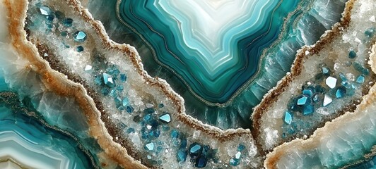 Close-up texture of natural wavy landscape with faceted jaded crystal fragments, showing earthly tones and gemstone sparkle