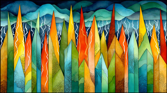 lightning storm merging in surreal abstract energy explosion over a jagged terrain