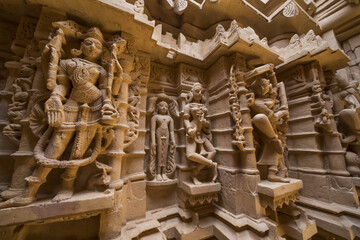 Ornate carvings in a Temple in Jaisalmer Fort; Jaisalmer, Rajasthan, India