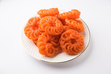 Jalebi or Jilebi Jangri - traditional Indian Diwali sweets, selective focus