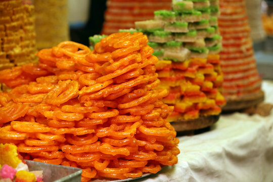 Traditional Indian Diwali sweets focus on Jilebi or Jangri