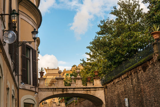 ROME, ITALY - January 17, 2019: Traditional street view of old buildings. is a city and special comune in Italy. With 2.9 million residents. Rome, ITALY