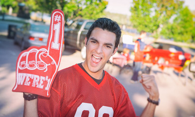Tailgating: Excited Fan Wearing Foam Finger And Cheering