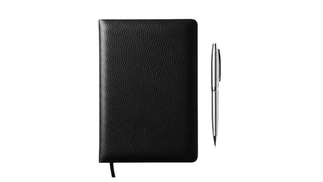 A sleek black notebook and a stylish pen, a perfect combo for jotting down notes or creative thoughts transparent background