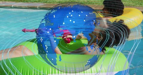 Young girls enjoying pool time on inflatable floats