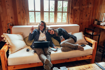 Midlife couple enjoying a joyful selfie moment together