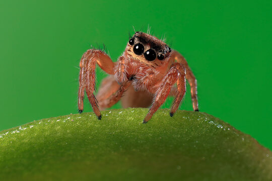 Portrait of a jumping spider magnified 10 times. Real life frame width is 2.2mm. Jumping spiders are a group of spiders that constitute the family Salticidae.