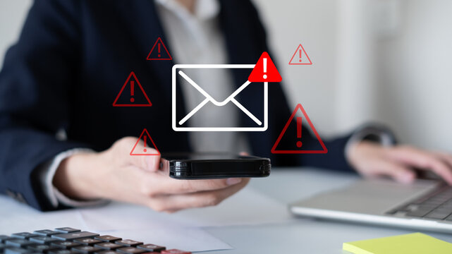 Mail security and virus spam alert in email. Fake text email scam.Scammers online.Cyber scam. Spam email message on digital screen.