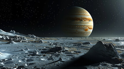 Majestic planet jupiter dominating a vibrant cosmic dreamscape with a stunning display of colors and stars in space