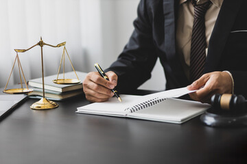 Concept of legal justice. Lawyer is working in a law firm.
