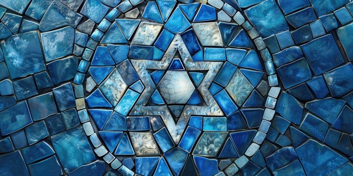 A blue glass mosaic featuring the Star of David symbol, suitable for Jewish-themed designs and backgrounds