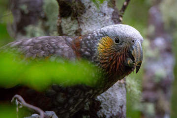 New Zealand Native Parrot Kaka in a Tree