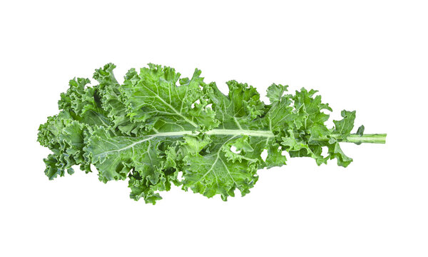 Single curly kale leaf isolated on white background