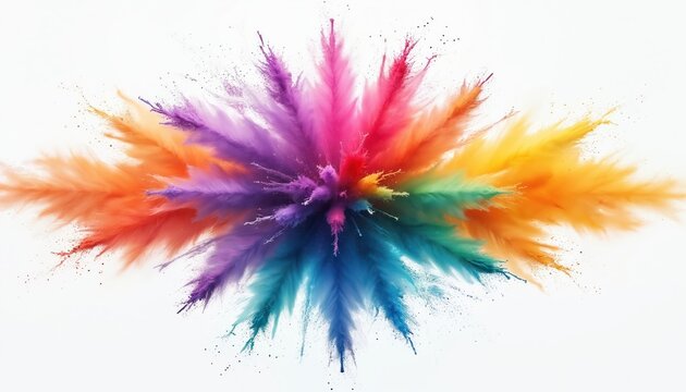 Vibrant kaleidoscopic explosion of colorful powder paint. Abstract artistic concept design with symmetrical burst of rainbow pigments, smoke. Motion effect with pastel colors, representing