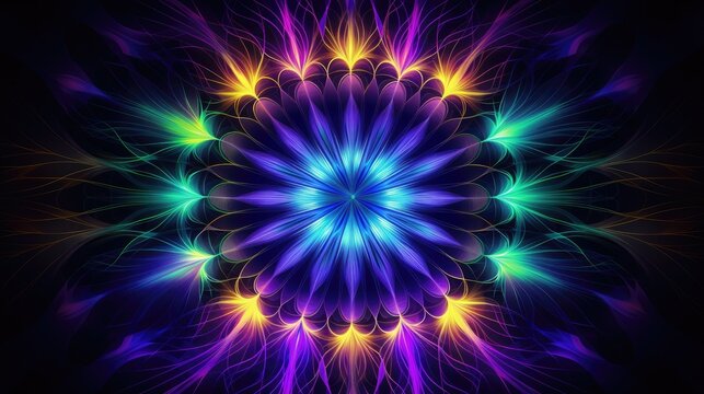Vibrant glowing kaleidoscope psychedelic pattern design