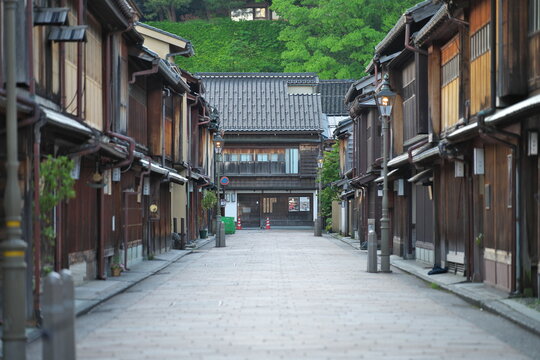Kanazawa,Japan - May 14,2024: Higashi Chaya Tea District in Kanazawa at dawn