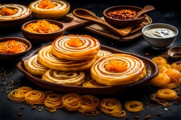 Jalebi Spiral with Sugar Syrup, The indian food, sweet indian for celebrate, Holi festival