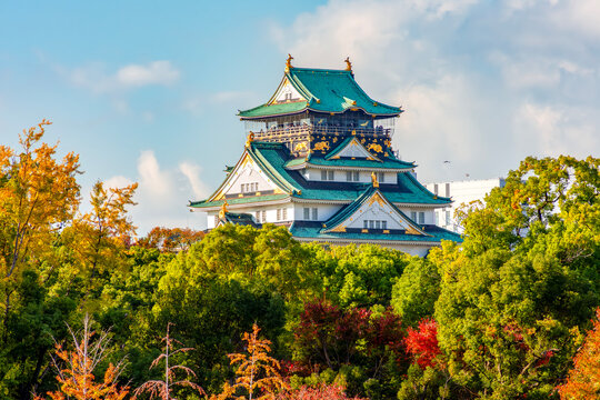 Osaka Castle beautiful attraction ancient architecture landmark Osaka Castle in autumn, Osaka City, Kansai, Japan.