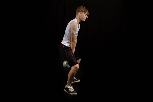 Teenage boy doing kettlebell swings