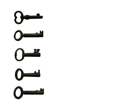 Vintage typewriter showing top secret embossed metal letters with round keys