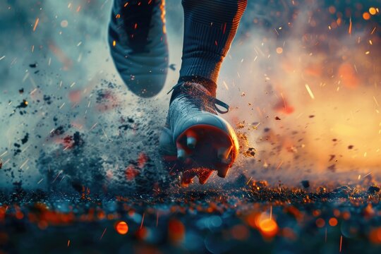 Close-up shot of a soccer player kicking a ball, perfect for sports and fitness related themes