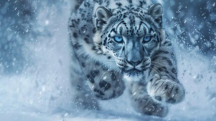 Dynamic action shot of a galloping white horse, hooves kicking up dust as it speeds across an open plain