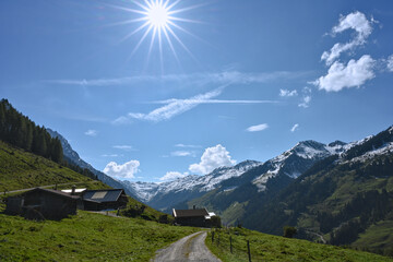Hiking trails in the Sperental valley near Aschau in Tyrol, Austria