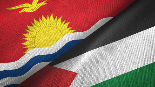 Palestine and Kiribati two flags textile cloth, fabric texture
