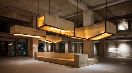 the image shows an indoor space, possibly a gallery or a contemporary lobby
