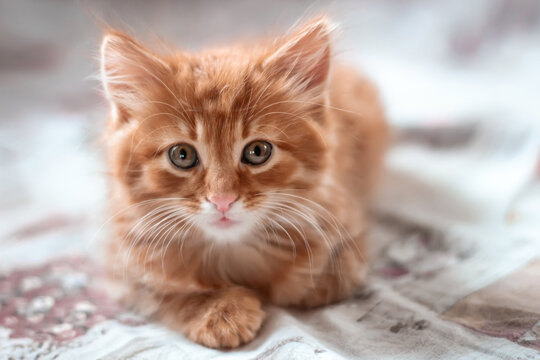 Cat kitten red headed wondered lying face portrait