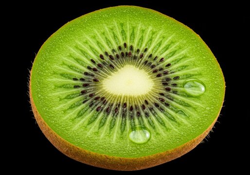 green kiwi slice with drop golden isolated on transparent background Generative Ai.