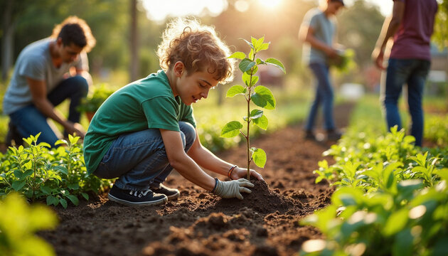 Kneeling woman pruning succulents and shrubs in shaded nursery for sustainable gardening