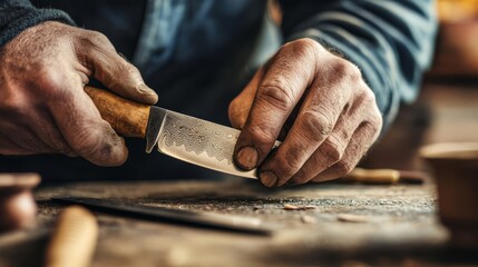 Skilled knife maker in workshop, expert artisan focused on craft