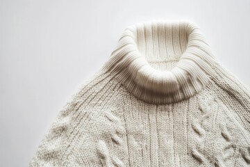 Three patterned knit sweaters with turtleneck collars on white background isolated on a transparent background