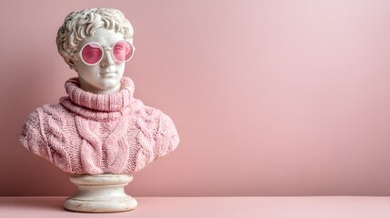 Ornate bust wearing a pink cable knit turtleneck and sunglasses.