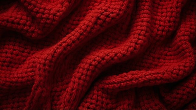 A texturized background featuring a bright red knit sweater. Soft and warm fabric.