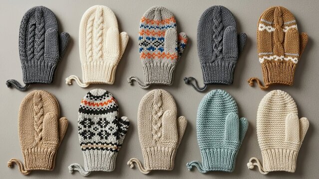 Brown wool glove with melting ice crystals and frost on ribbed knit macro winter texture