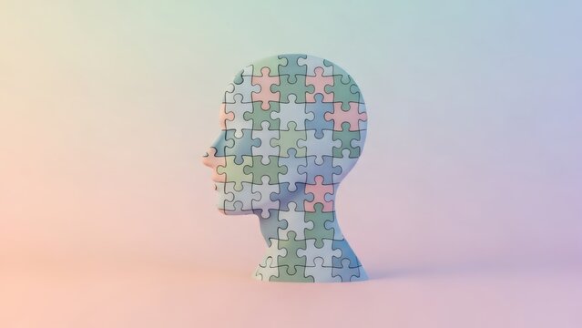 Creative Brain Sculpture Made of Colorful Cubes on a White Background