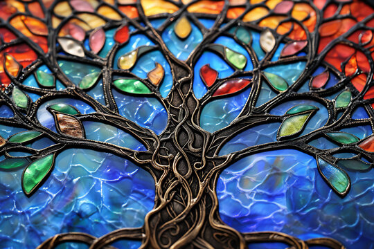 Colorful stained glass mosaic art boasting vibrant abstract patterns